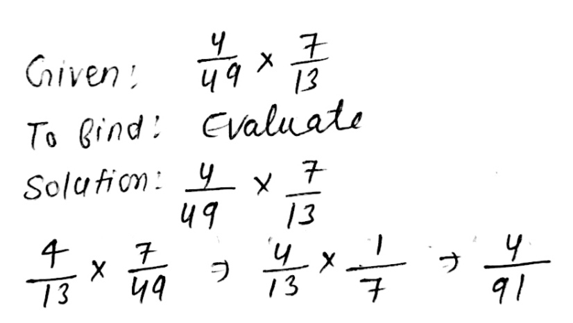 Evaluate Dfrac 4 49 Times Dfrac 7 13 Snapsolve from wb-qb-sg-oss.bytededu.com In the first exercise you have to draw a line from the sum to the correct answer. In the second exercise you have to enter the missing number to complete the sum correctly. The result is a (mixed) fraction reduced to it's simplest form. Free math lessons and math homework help from basic math to algebra, geometry and beyond. Ride navy pier's famous ferris wheel and then soar to the top of the willis tower to test your mettle in a glass box that juts out 103 stories above street level. Another example highlighting the difference between the two would be to show that 10:15 am is written as 10:15 in military time but 2:30 pm is written as 14:30. Creates series of calculations that can be printed, bookmarked, shared and modified in batch mode. We place a zero to the right and then write down the result of 2 × 987.